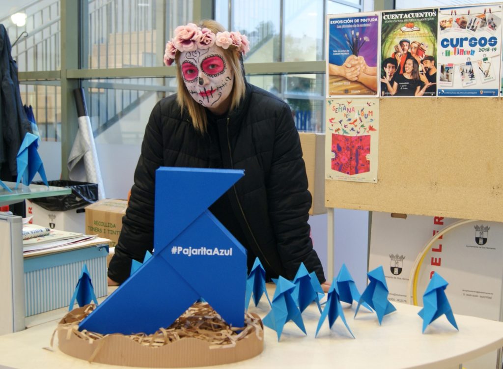 La Pajarita Azul se unió a dos centenares de niños en la celebración de Halloween la Biblioteca de Montequinto, donde se realizó un taller de papiroflexia.