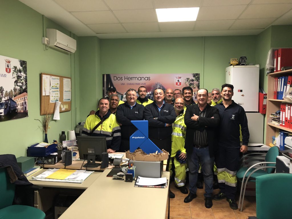 Una Pajarita Azul ha anidado en el municipio de Dos Hermanas, donde ha sido presentada en rueda de prensa por el concejal de Movilidad y Limpieza Urbana, Antonio Morán y el técnico auxiliar de Limpieza Urbana y coordinador de Recogida Selectiva, Antonio Narváez. El ayuntamiento sevillano ha obtenido una pajarita en la edición 2018 del programa de ASPAPEL. Morán destacó que Dos Hermanas es la única ciudad de España, donde todo el parque de contenedores es de tipo antihurto, lo que ha sido factor fundamental para sus buenos resultados, incrementando en más de un 30% el papel y cartón recogido, y para obtener este reconocimiento.
